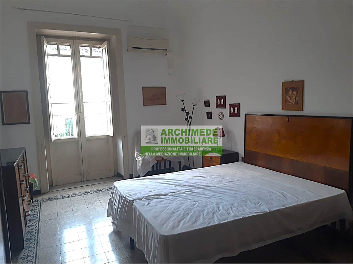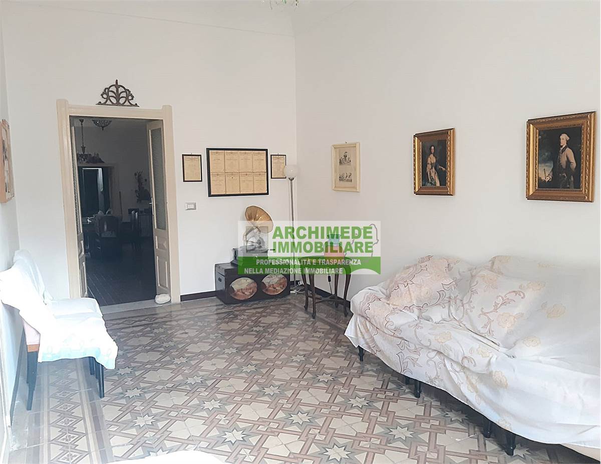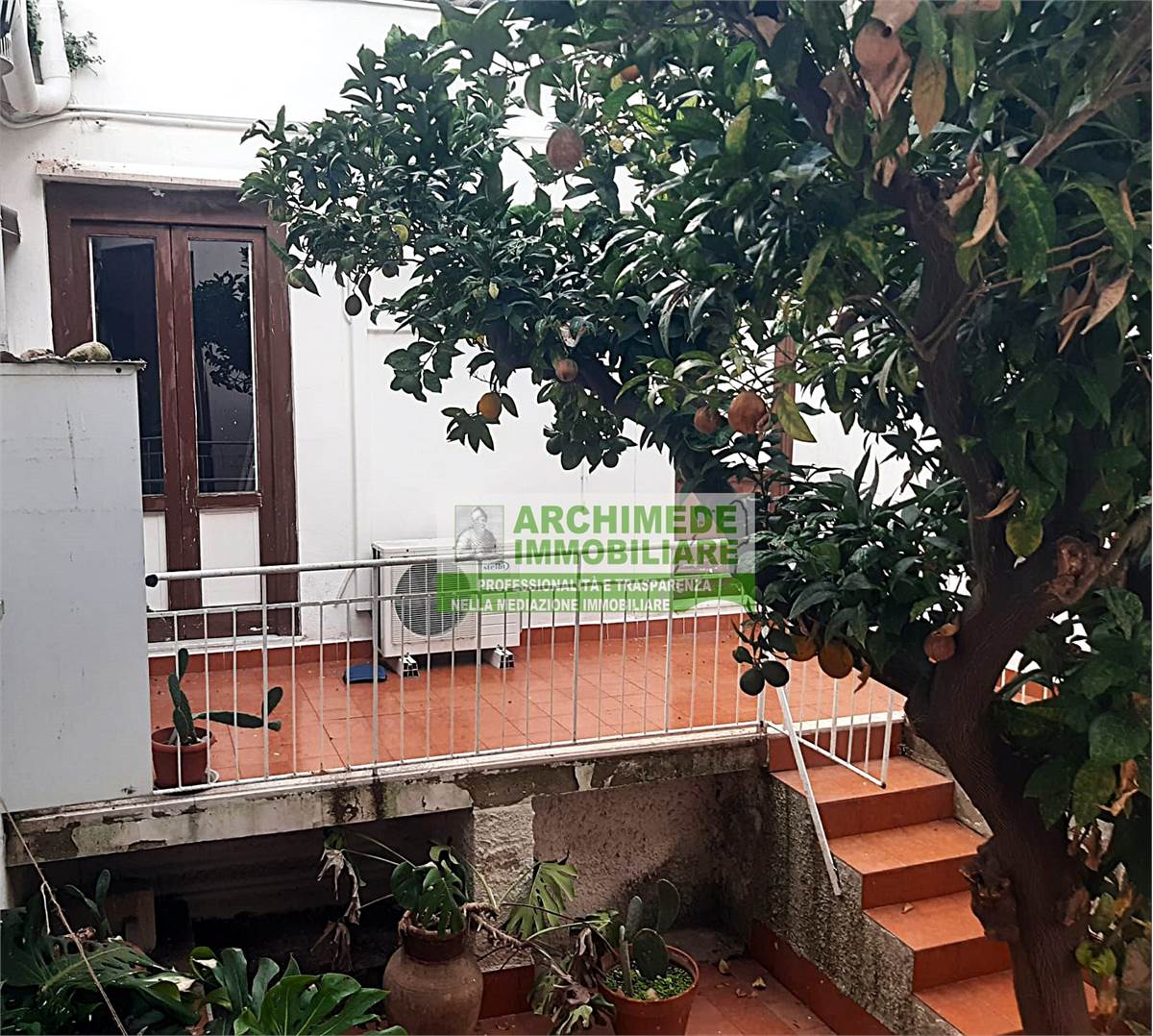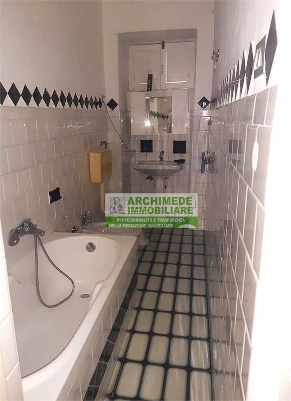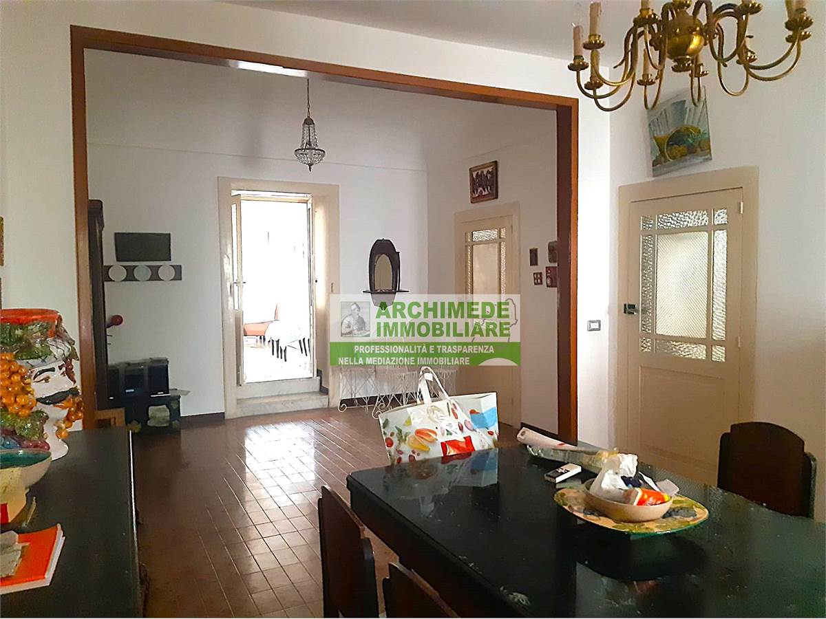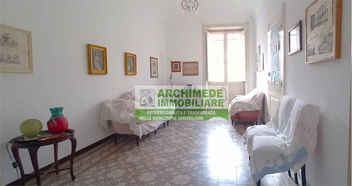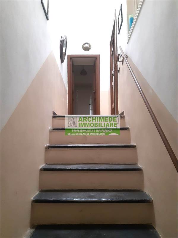 pianerottolo ampio con lucernaio, ingresso/disimpegno, al centro dell’immobile troviamo un grande salone, con affaccio su ampio cortile interno, mentre nella parte anteriore dello stesso, due ampie stanza, che potrebbero essere due stanza matrimoniali, con affaccio su balcone posto sulla strada principale, dall’altra parte, una zona cucina di passaggio, con piccola dispensa e finestrelle su cortile, piccolo wc, con lavabo e vaso, procedendo, stanza adibita a studio e altra camera matrimoniale, entrambe con affaccio su cortile, conclude un locale bagno completo e un corridoio, che dal disimpegno collega il cortile.