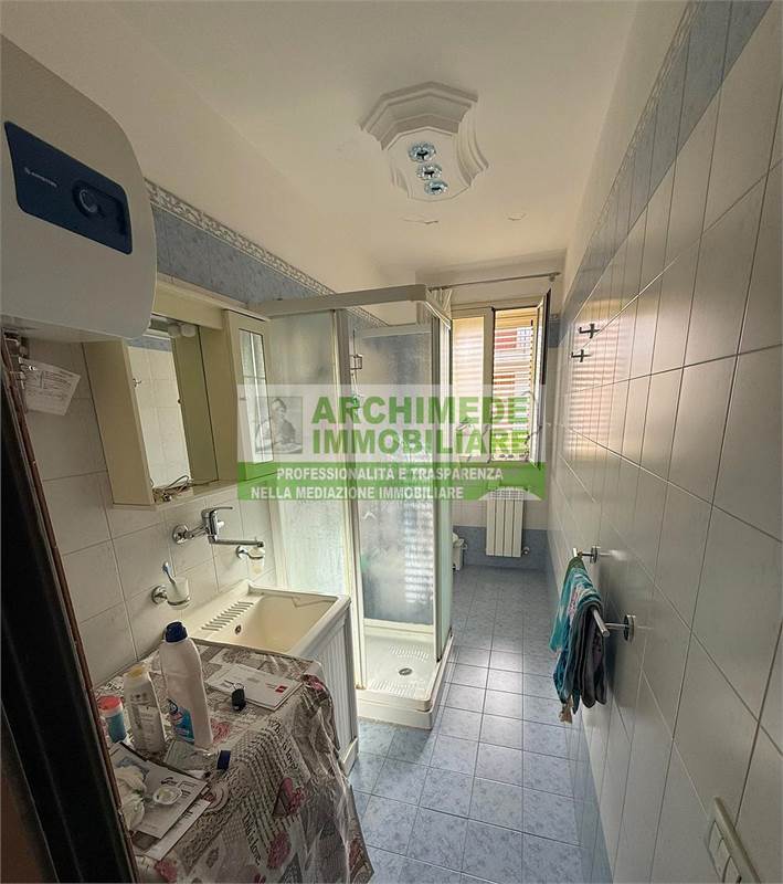 Ubicato nel contesto di un bel condominio, di poche unità abitative, con un bellissimo androne d'ingresso. Dal pianerottolo ampio, si accede all'immobile, composto da, ingresso/disimpegno, salone/cucina, con finestroni, su un balcone angolare, posto su strada principale, che rende quest'ambiente molto luminoso, camera da letto matrimoniale, locale bagno principale, completo, doppio servizio, con doccia, camera e ripostiglio.